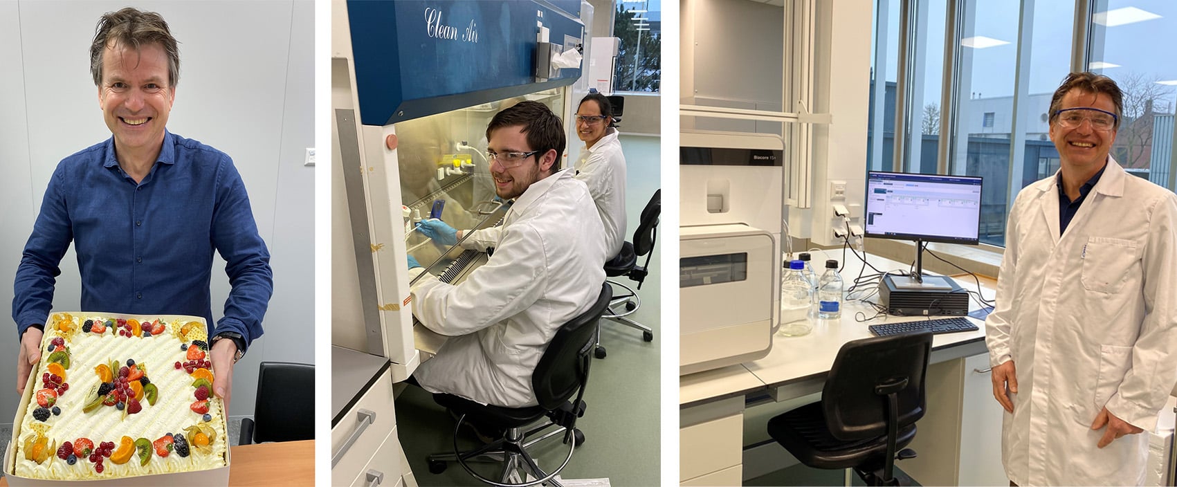 Earlier this week our colleague Nicole Willemsen-Seegers officially opened the laboratories by cutting a ribbon covering the Oncolines logo at the entry of the building. To celebrate that joyful fact, Symeres’ Head of Corporate Development Frank Leemhuis brought cake for the Oncolines crew, and he was given a tour of the labs.